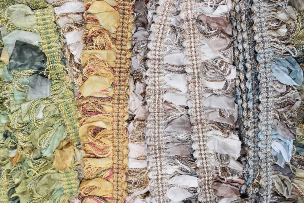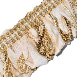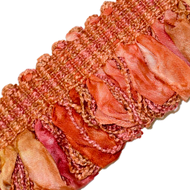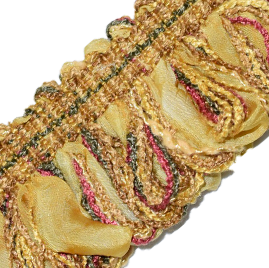 1/2 inch woven band with 1.5 inch silk and yarn looped fringe