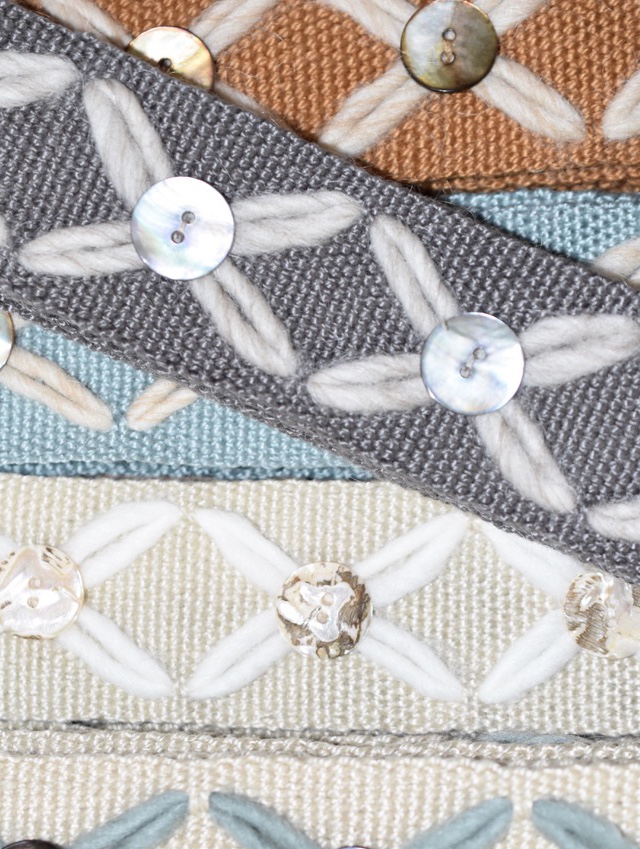 Browse our selection of trims by their styles. Bands, fringes, and buttons are just a few of our unique styles.